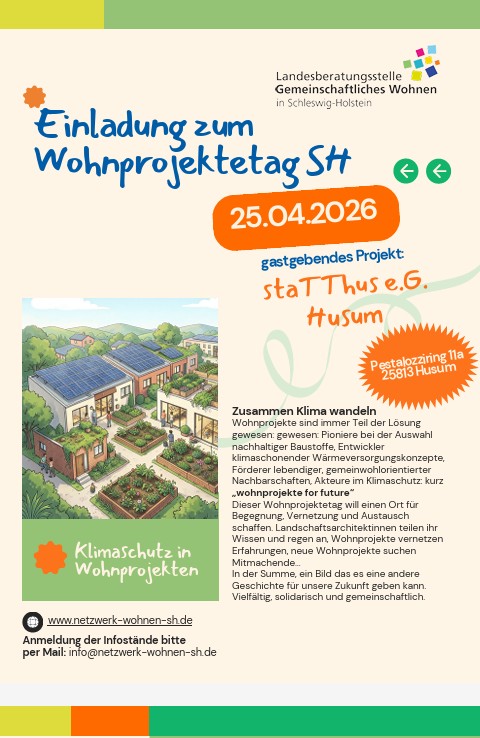 25.04.2026 in Husum: Wohnprojektetag SH "Zusammen Klima wandeln".